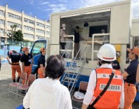 更に港南消防署野庭出張所の指導の下、初めて防災指導車による震度7の揺れを体験して頂き、より防災意識の向