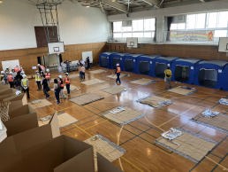 今回は避難所の割振り・トイレ対策・夜間照明確保・車いす使用など地域防災拠点のメンバーと